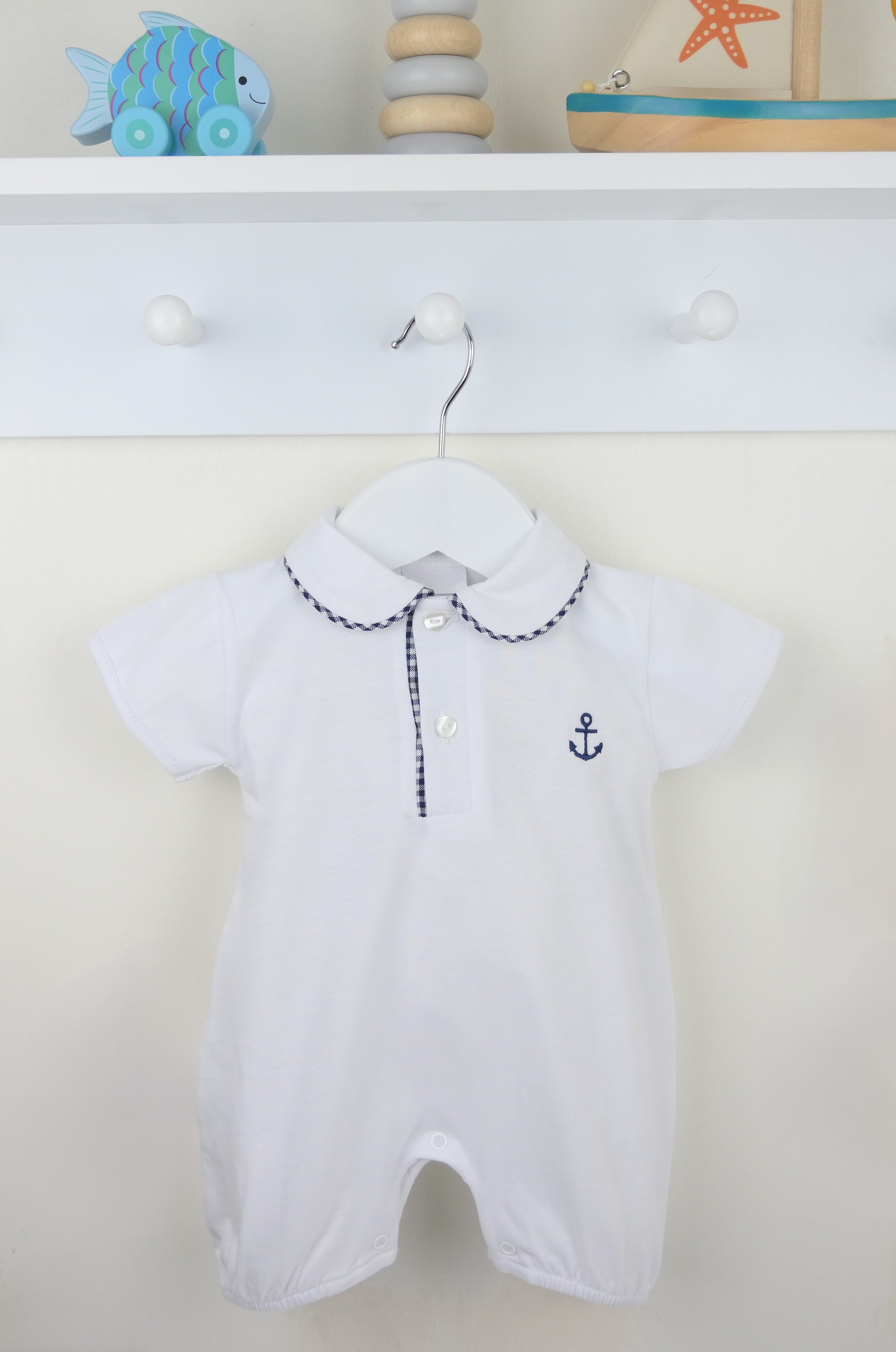 A beautiful pure cotton baby boy one-piece, the Cove Romper is a classic design with an adorable navy anchor embroidery at the chest. A perfect instant outfit for the new season.