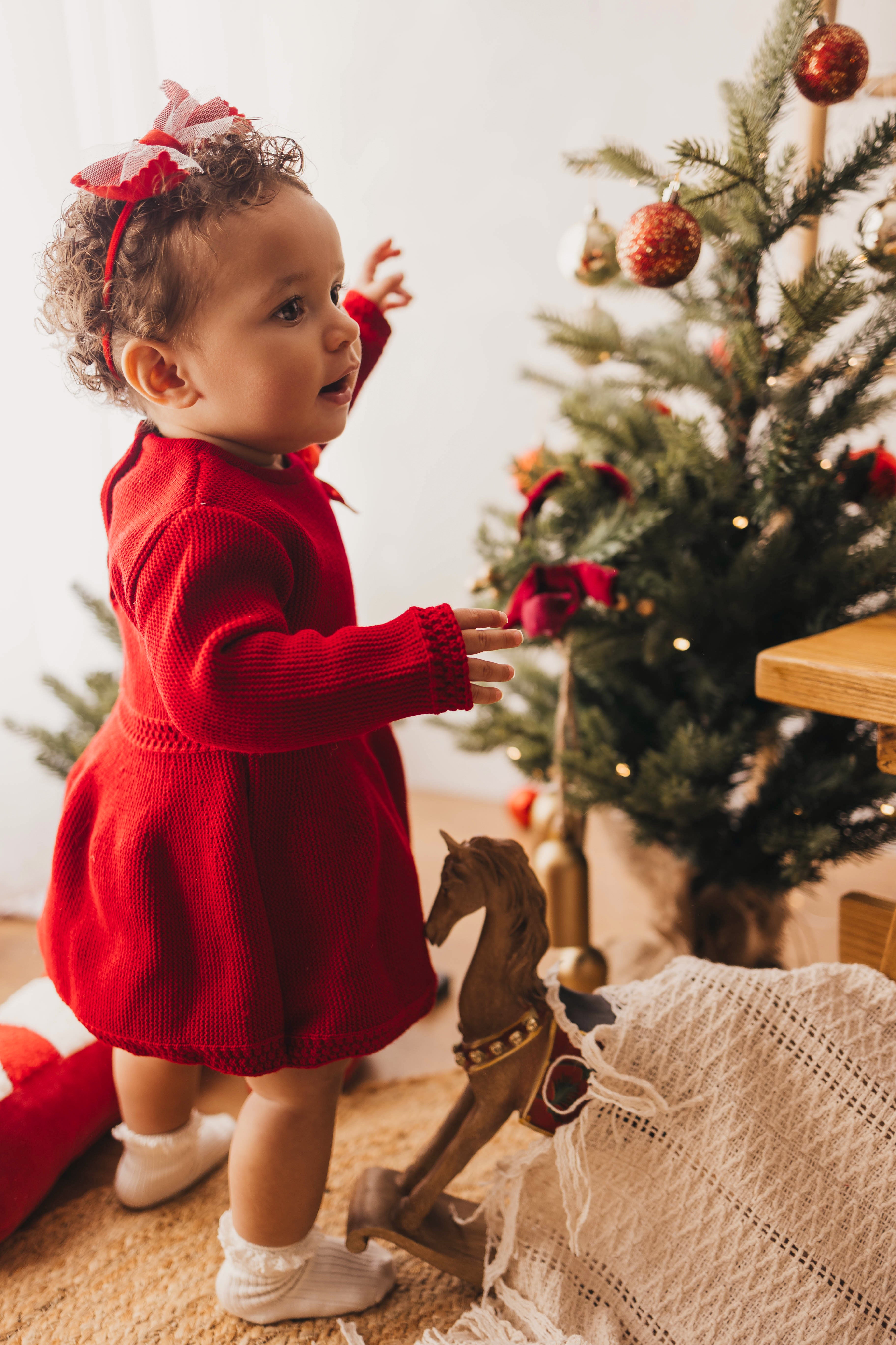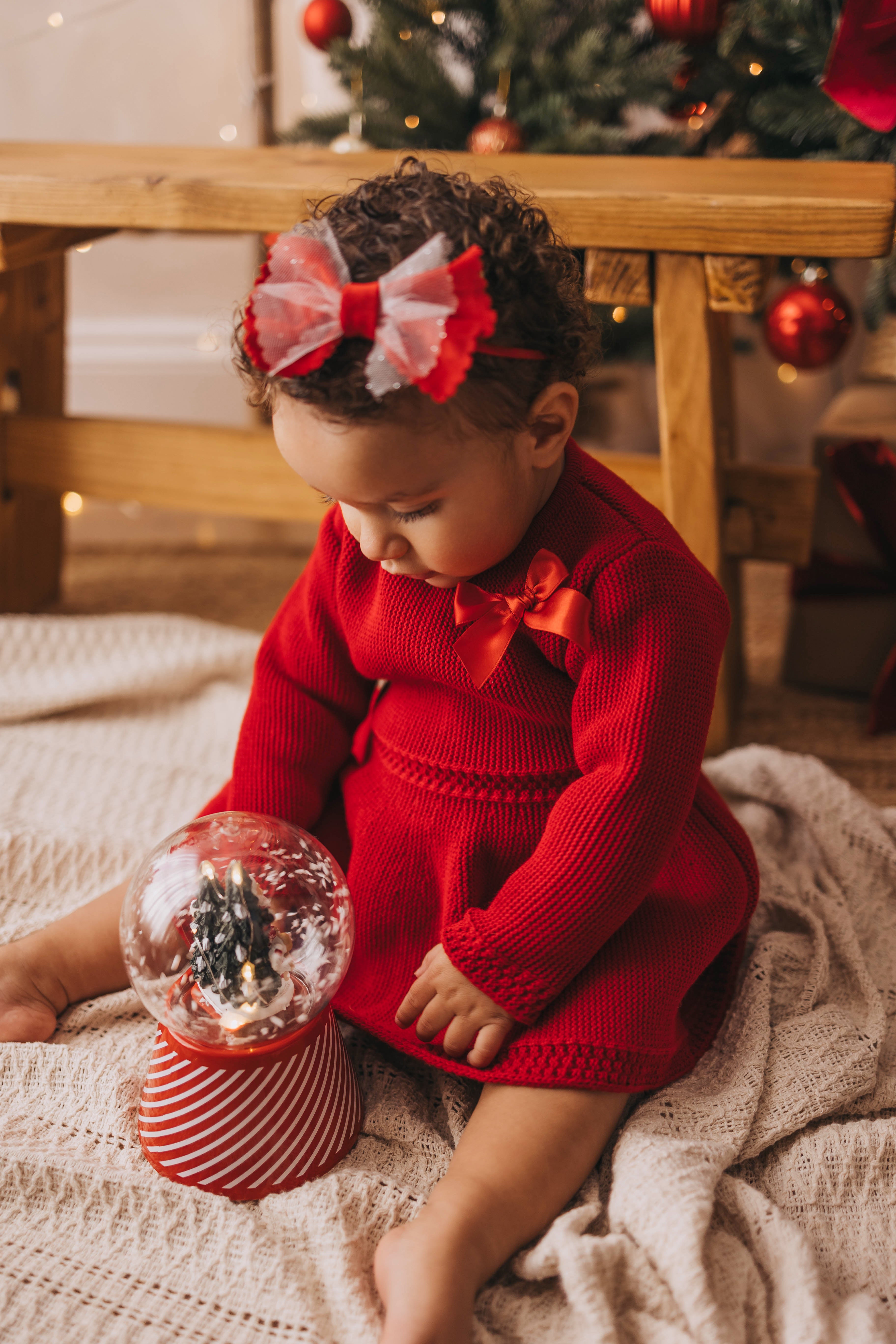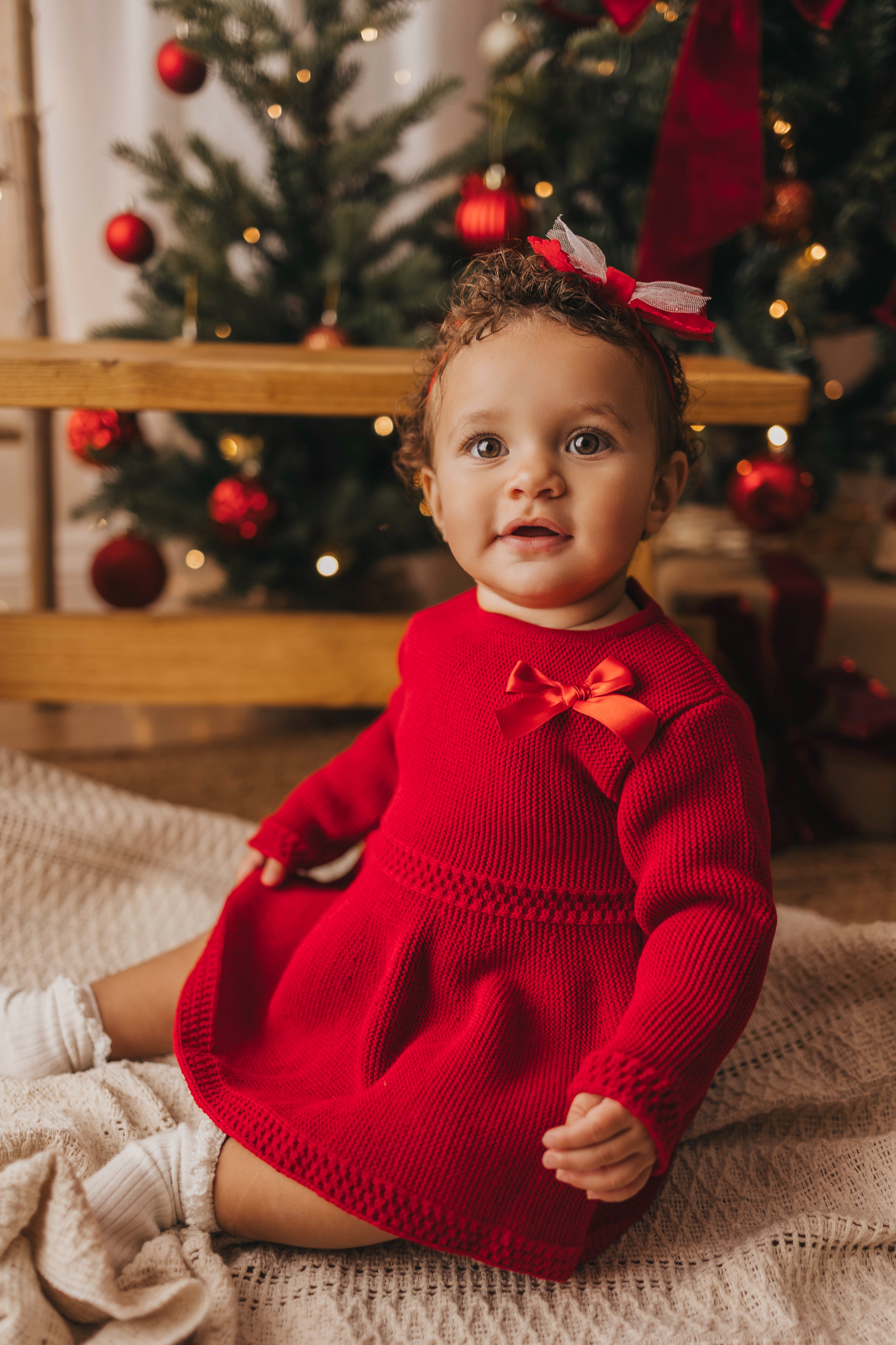Timeless and super chic this Christmas! Knitted in a red super-soft yarn with a stylish fitted waist and a pretty red bow to one shoulder, the Elena Dress is a lovely little one-piece for any special occasion.