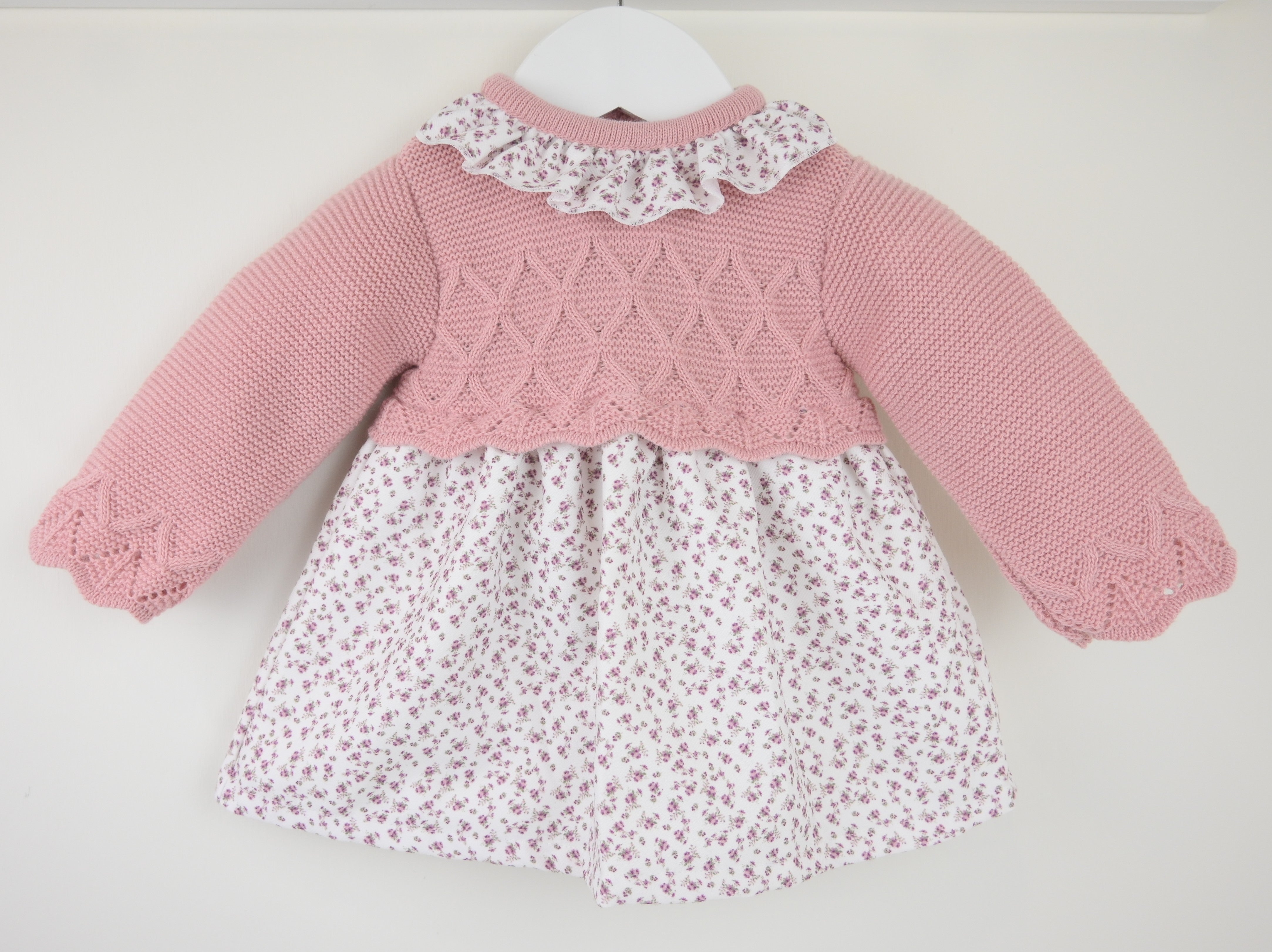 The adorable Leah Dress Dusky Pink has a cosy knitted bodice featuring a pretty lattice pattern and scalloped edge, just perfect for the cooler months. Gorgeous knitted details along the cuffs and neckline create a timeless look trimmed in a ditsy floral printed woven fabric. The attached skirt is also is fully lined for added warmth.