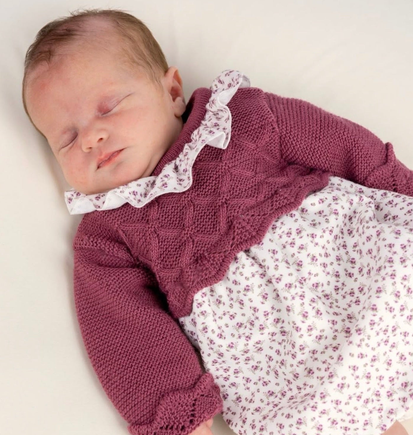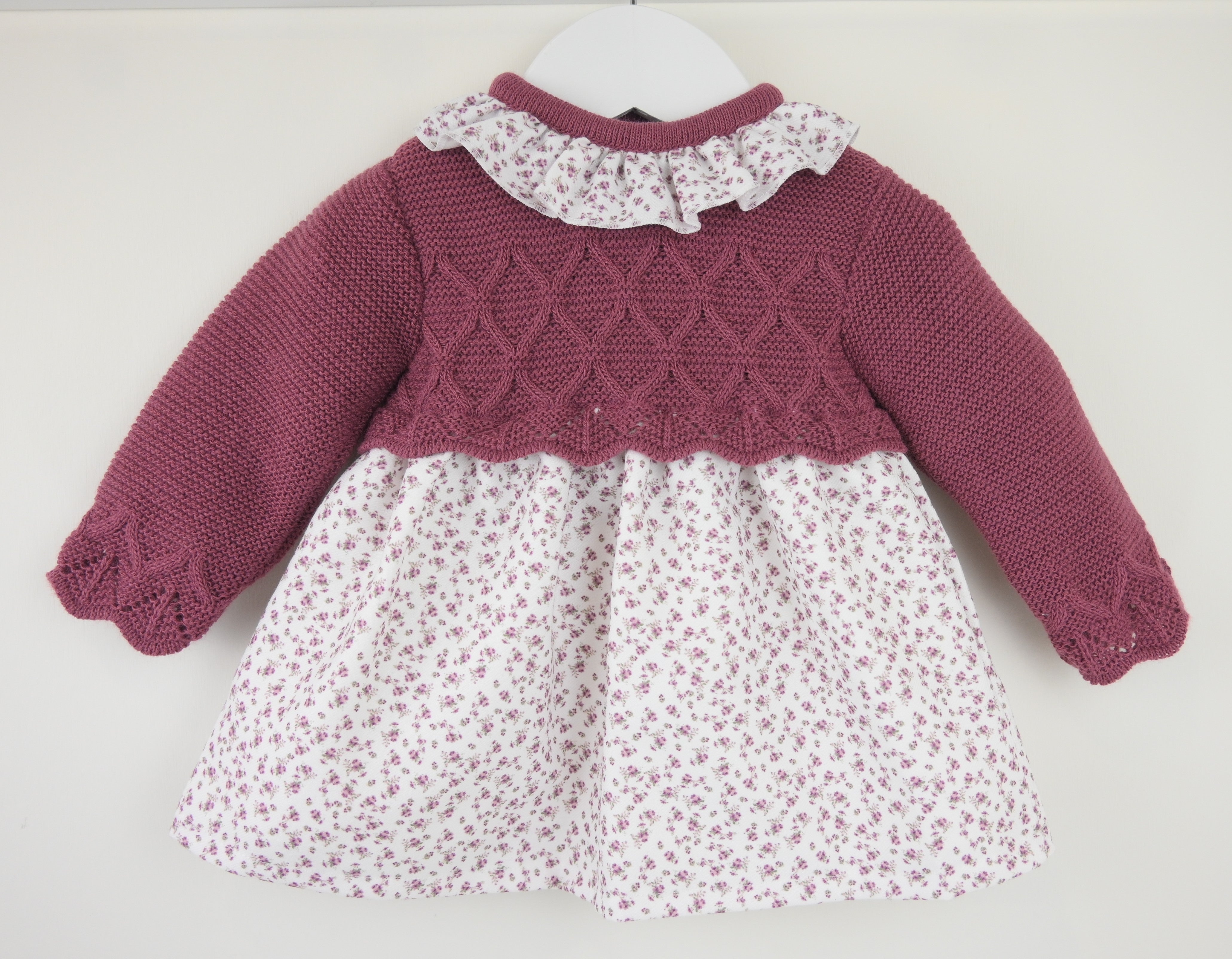 The adorable Leah Dress Raspberry has a cosy knitted bodice featuring a pretty lattice pattern and scalloped edge, just perfect for the cooler months. Gorgeous knitted details along the cuffs and neckline create a timeless look trimmed in a ditsy floral printed woven fabric. The attached skirt is also fully lined for added warmth.